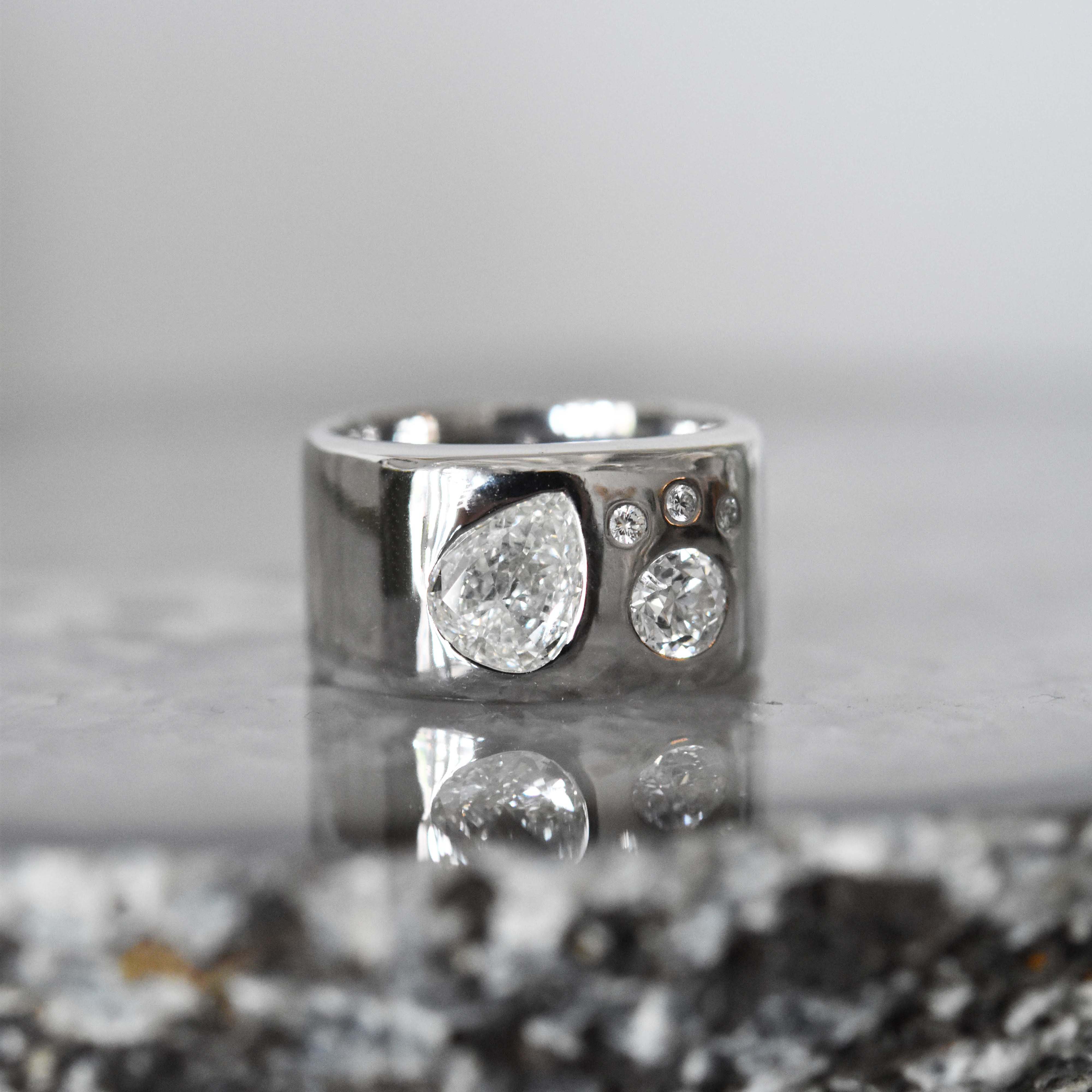 We can! We present two options for you - we can either recycle old metal/settings and provide a credit toward the cost of your piece, or use the metal in your new piece. If the metal holds sentimental value we recommend melting it into the new piece, however please note there is an additional cost associated with this.